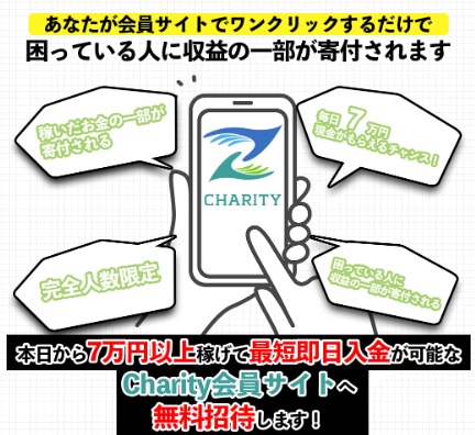 今回はそしてあなたも毎日7万円の収益を受け取れるという触れ込みの集客型投資ファンドCharityという案件を見つけてきました。