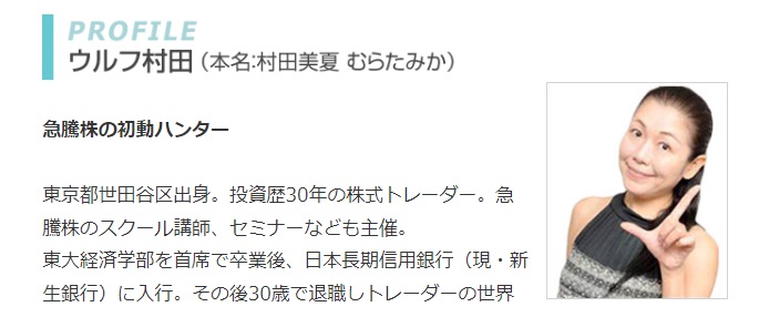 今回は累計5000名以上が受講したという触れ込みのウルフ村田(村田美夏)さんが仕掛ける短期成長株投資オンライン講座について調べてみました。