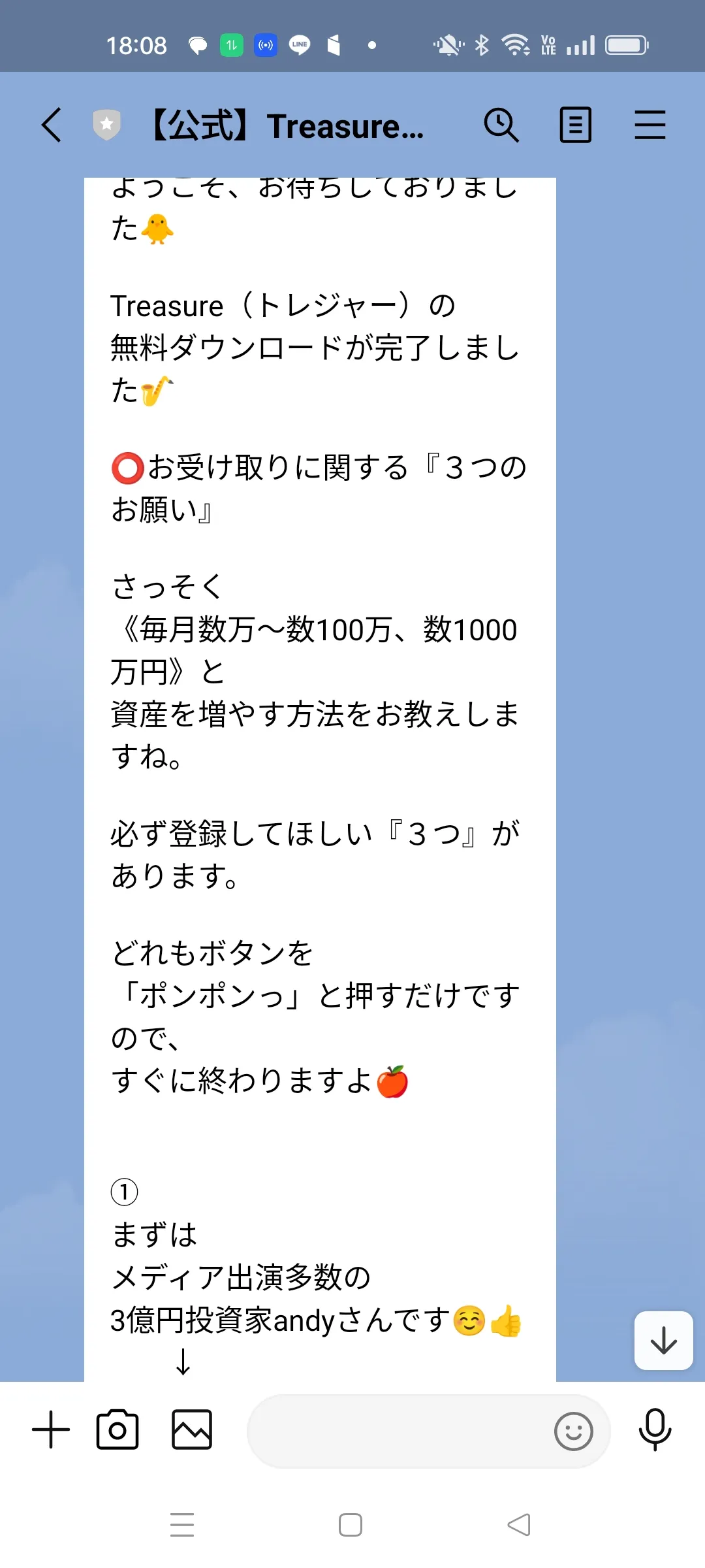 本当に無料?Treasure(トレジャー)公式LINEに潜入した結果!判明した事実!
