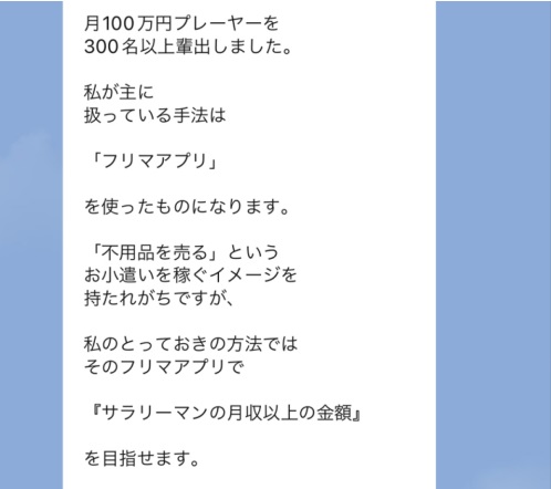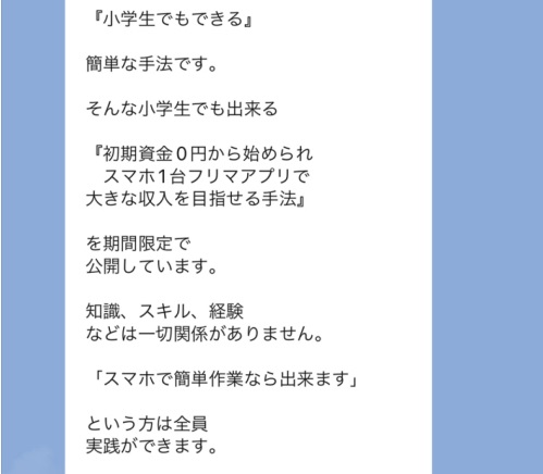 ここでわかった事は、【フリマアプリを使って稼ぐ】【LINEでお宝アラートを受信して簡単な作業をする】という事です。
