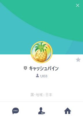 どうやら公式LINEに遷移するようですね、アカウント名はキャッシュパインというもので、現状まで登録者は「1,833人」となっているようです。