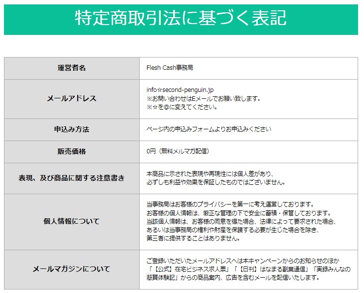 こちらがFlesh Cashの特商法表記ですが…