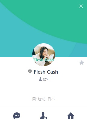 どうやら公式LINEに遷移するようですね、アカウント名はFlesh Cashというもので、現状まで登録者は「374人」となっているようです。