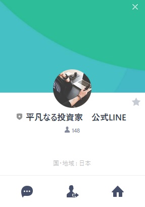 どうやら公式LINEに遷移するようですね、アカウント名は平凡なる投資家 公式LINEというもので、現状まで登録者は「148人」となっているようです。