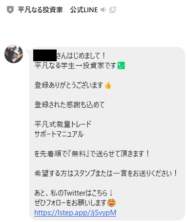 登録後に届いた内容はこちらになります。公式Xも稼働し、フォロワーも多いので信用出来そうに見えますよね。けれど数字に騙されてはいけません。肝心なのは中身です。
