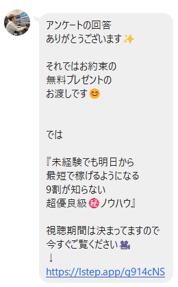 アンケートに答えると㊙ノウハウという名の動画が送られてきます。内容は下記の通りです。