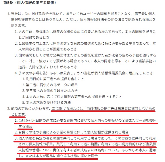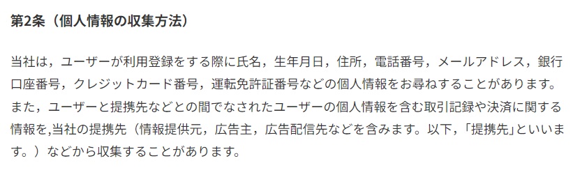 プライバシーポリシーは長いので、気になる箇所だけピックアップしてみました!