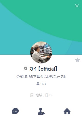 どうやら公式LINEに遷移するようですね、アカウント名はカイ【offical】というもので、現状まで登録者は「963人」となっているようです。