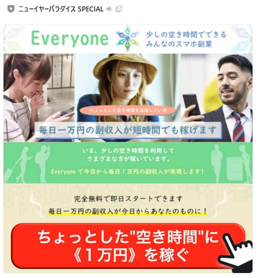 これ以降は副業の広告が流れてくるだけで、紹介ページに書かれているような内容は教えてもらえません。