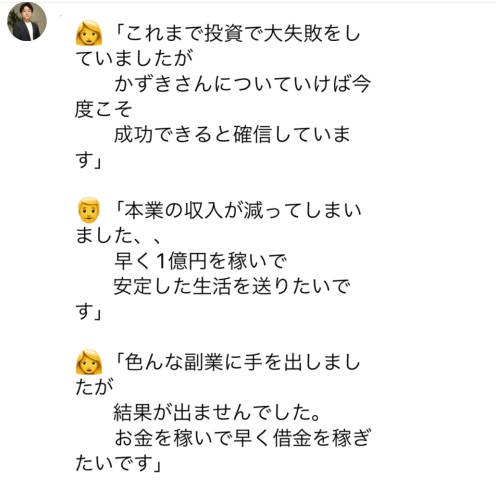 投資未経験から累計300名が実証済み!という特徴から、FIRE投資術は非常に人気を集めたというか、たくさんの人が気になっていたんでしょうか…結構たくさんの相談を頂きましたが、中でも多かった質問・相談はこのようなものです。