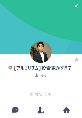 どうやら公式LINEに遷移するようですね、アカウント名は【アルゴリズム】投資家かずき7というもので、現状まで登録者は「1,947人」となっているようです。