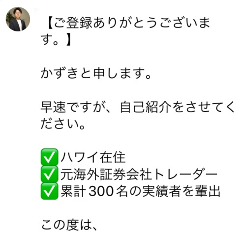 こちらが登録後に届いた内容になります。この後もまだまだ届きましたが、同じ内容ばかりが届きましたので端折ります。見てもらえればわかると思いますが、ここでも料金などについての説明はありません。リスクについての説明もなく、これを見たら「リスクなく無料で稼ぎ放題!」と思ってしまっても仕方ないかと思います。