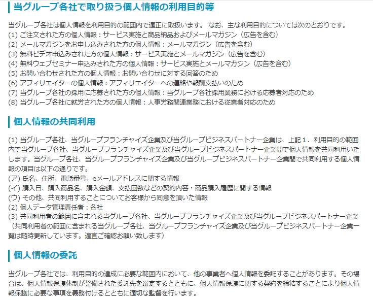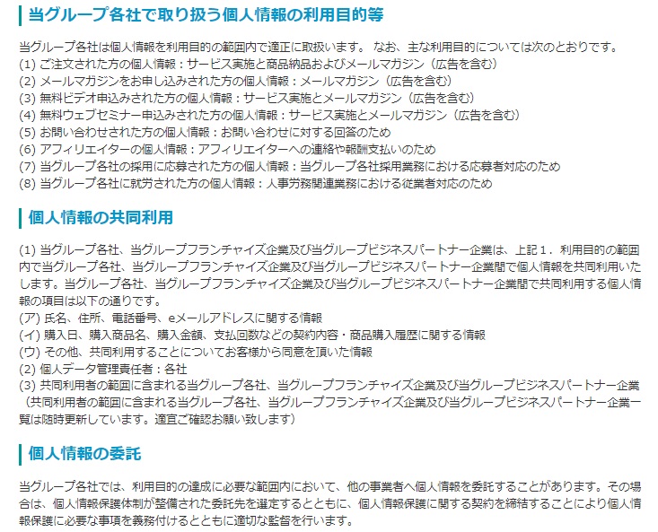 プライバシーポリシーは長いので、個人情報の部分を抜粋しました。