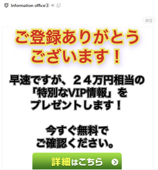 どうやら公式LINEに遷移するようですね、アカウント名はinformation office③というもので、現状まで登録者は「829人」となっているようです。