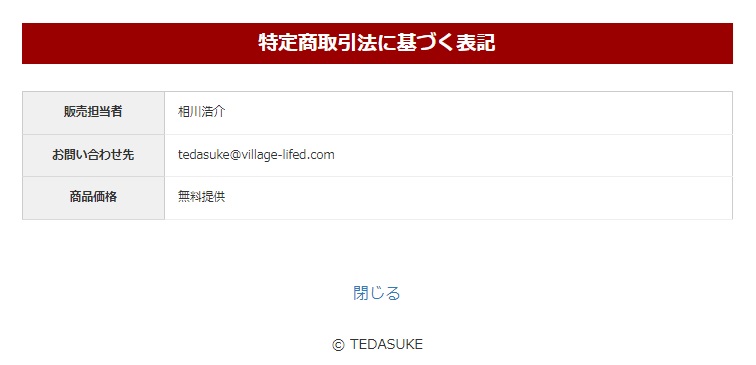 【TEDASUKE】の特商法表記も確認してみましたが、こちらもまた特商法表記としては成り立ちません。