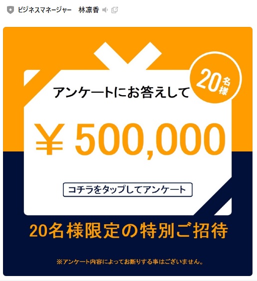 ちゃんとした説明もなしに促そうとするのは大変悪質な行為です。LINE登録したからといって、簡単に個人情報を記入してはいけません。