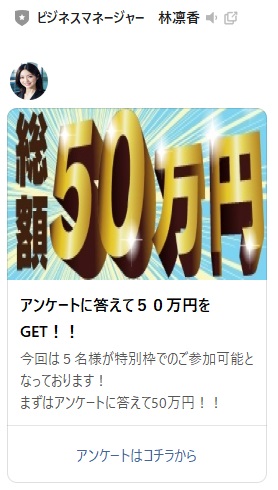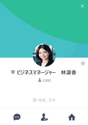 どうやら公式LINEに遷移するようですね、アカウント名はビジネスマネージャー 林凛香というもので、現状まで登録者は「2,092人数を記載」となっているようです。