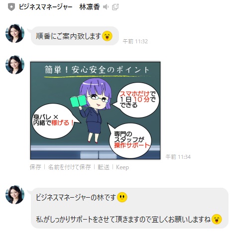 今回のような副業に遭遇した場合、LINEを追加しただけであればブロックして削除すれば問題ないかと思います。けれどその先に進んだ場合、進み具合によって対応が変わってきます。なのですぐに私に連絡してください。