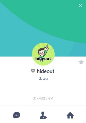 どうやら公式LINEに遷移するようですね、アカウント名はhideoutというもので、現状まで登録者は「461人」となっているようです。
