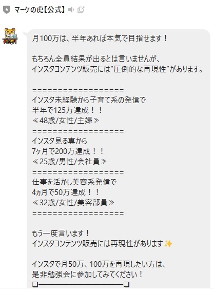 紹介ページを見てみると、インスタ運用で稼ぐ為の講座のようですが…今回も皆さんにオススメ出来そうにありません。