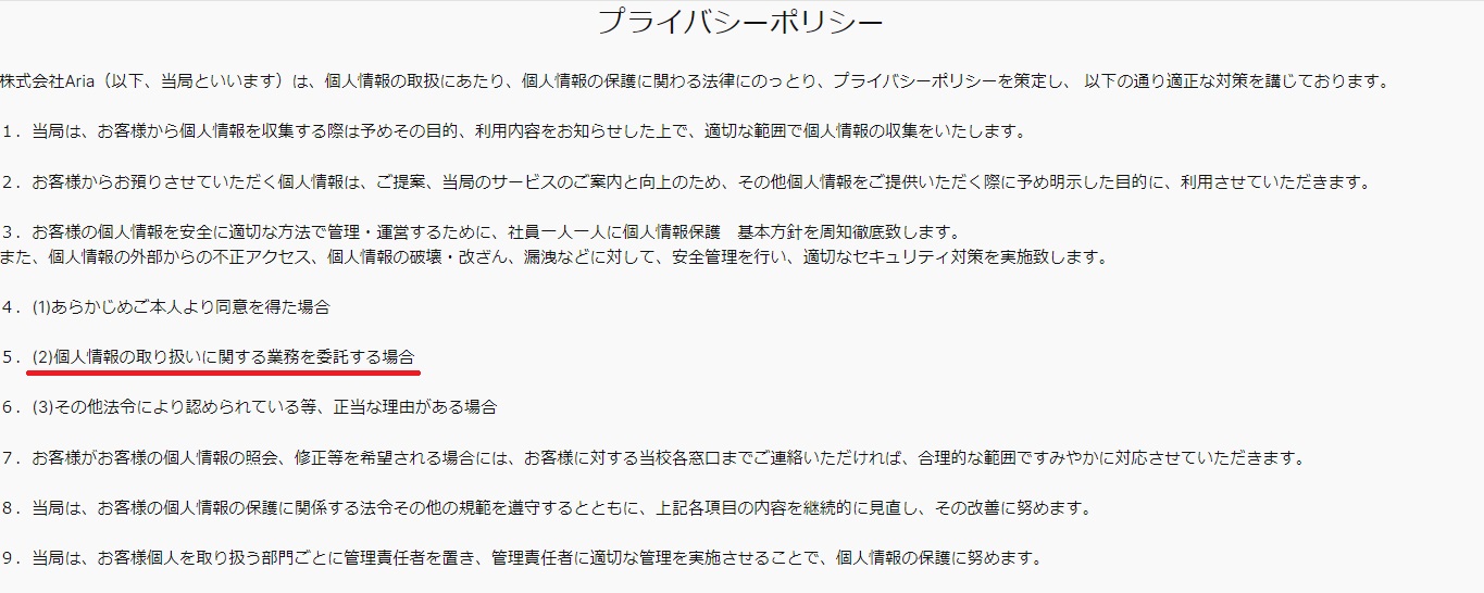 こちらがプライバシーポリシーですが、業務委託はあるようですが個人情報の共有などはなさそうです。