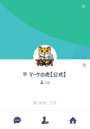 どうやら公式LINEに遷移するようですね、アカウント名はマーケの虎【公式】というもので、現状まで登録者は「138人」となっているようです。