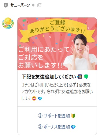 こちらにあるサポートやボーナスは、ただ別のアカウントを追加させられるだけです。なので絶対に登録はしないでください。