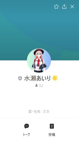 どうやら公式LINEに遷移するようですね、アカウント名は水瀬あいりというもので、現状まで登録者は「52人」となっているようです。