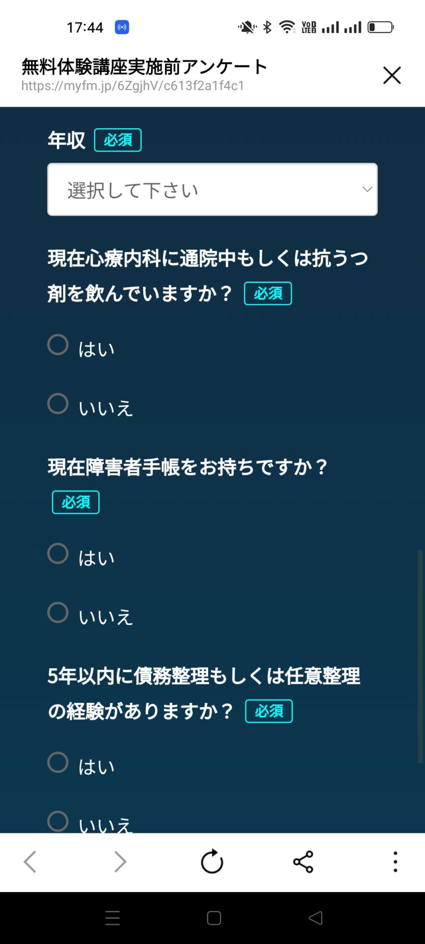 他にも精神疾患の履歴であったり、借金の履歴を聞いてきますが、これは契約が出来るか出来ないかを判断しているように見えます。