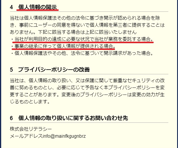 その他にも免責事項に、「第三者の情報を含んだ内容を公開しており」と書かれています。