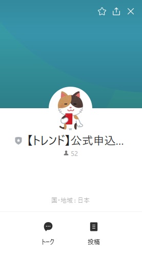 どうやら公式LINEに遷移するようですね、アカウント名は【トレンド】公式申込受付というもので、現状まで登録者は「52人」となっているようです。