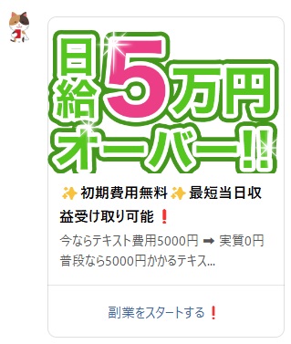 稼げる可能性が低い上に、高額請求されるのが目に見えている副業なので、こちらはオススメする事が出来ません。