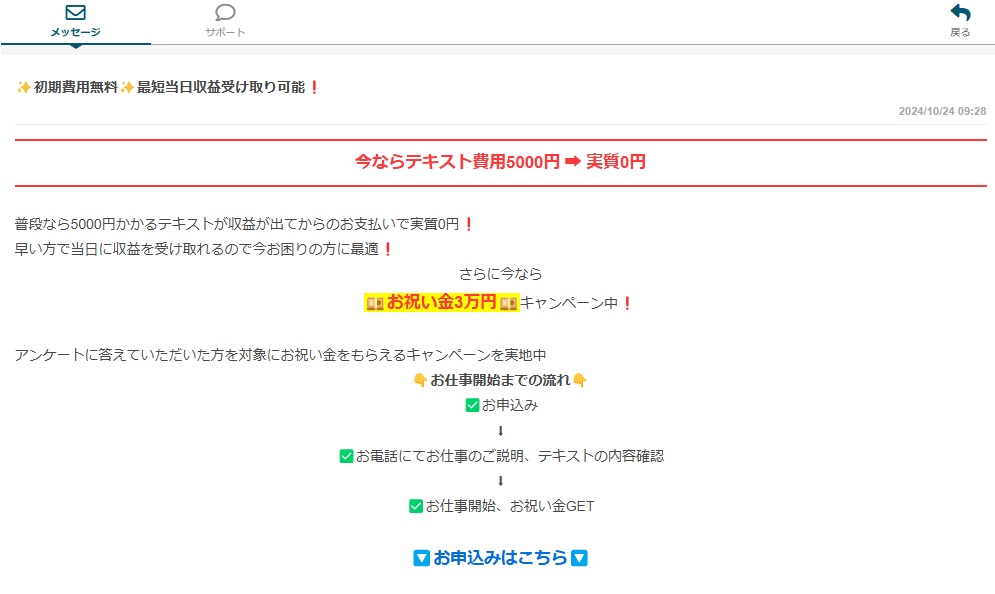 これを見る限り、紹介報酬目当ての副業詐欺ではなさそうですが、もっと悪質な副業の可能性は隠されています。