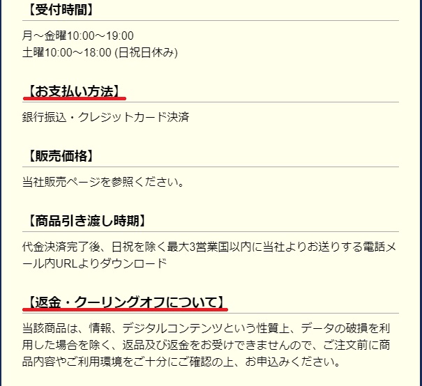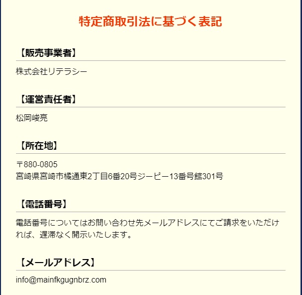 こちらでは両方とも確認出来ました!なので早速特商法表記からチェックしていきましょう!