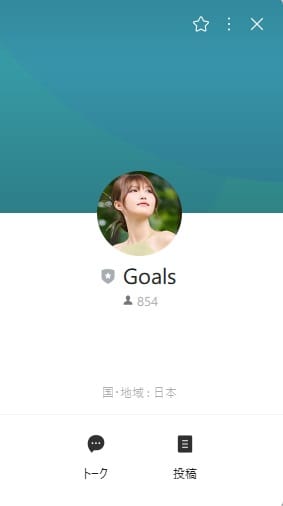 どうやら公式LINEに遷移するようですね、アカウント名はGoalsというもので、現状まで登録者は「854人」となっているようです。