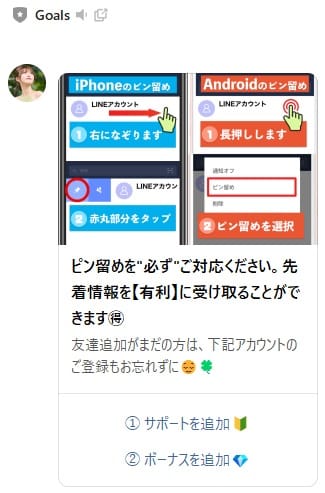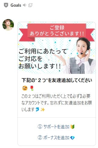 こちらにあるサポートやボーナスは別アカウントのQRです。登録したところでこのアカウントと何も変わりませんので、登録するだけ無駄です。