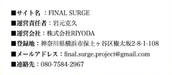早速FINAL SURGE(ファイナルサージ)の特商法表記やプライバシーポリシーについて調べてみたのですが、怪しい点があります。