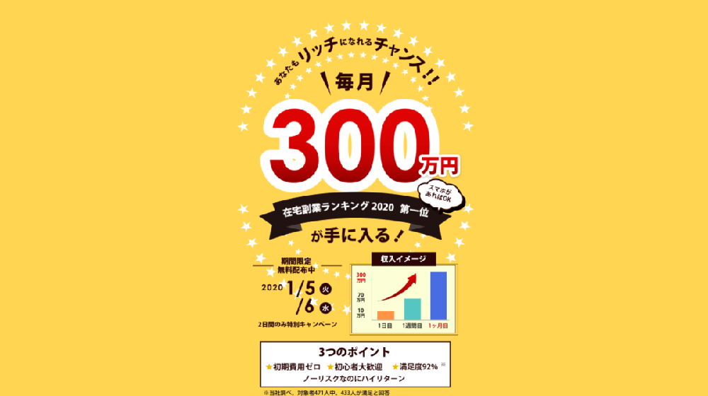 新春特別キャンペーン!!という無料オファーは詐欺?稼げる副業なのかレビュー!