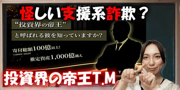 「投資界の帝王T.M」は怪しい支援系詐欺?寄付と称しているのは嘘だらけ?評判や口コミを徹底検証!